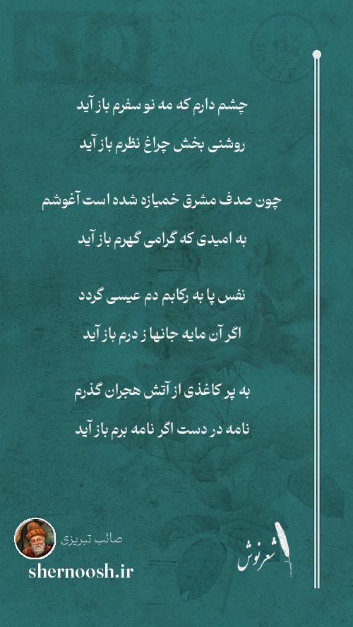 4 به پر کاغذی از آتش هجران گذرم نامه در دست اگر نامه برم باز آید