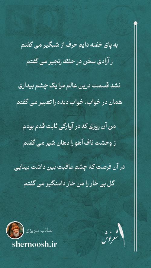 1 به پای خفته دایم حرف از شبگیر می گفتم ز آزادی سخن در حلقه زنجیر می گفتم