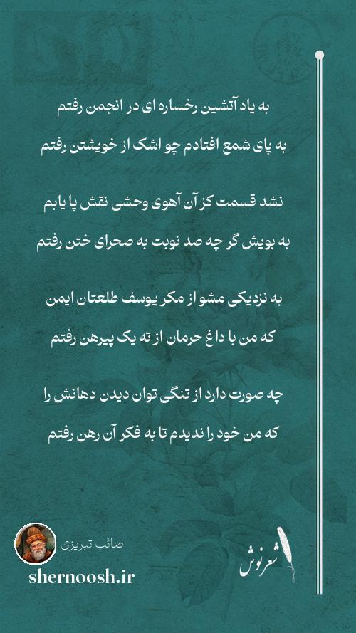 1 به یاد آتشین رخساره ای در انجمن رفتم به پای شمع افتادم چو اشک از خویشتن رفتم