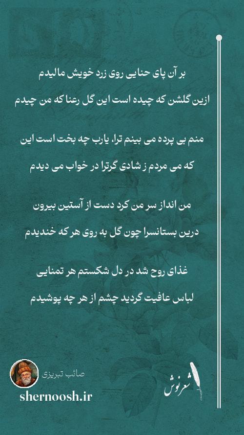 1 بر آن پای حنایی روی زرد خویش مالیدم ازین گلشن که چیده است این گل رعنا که من چیدم