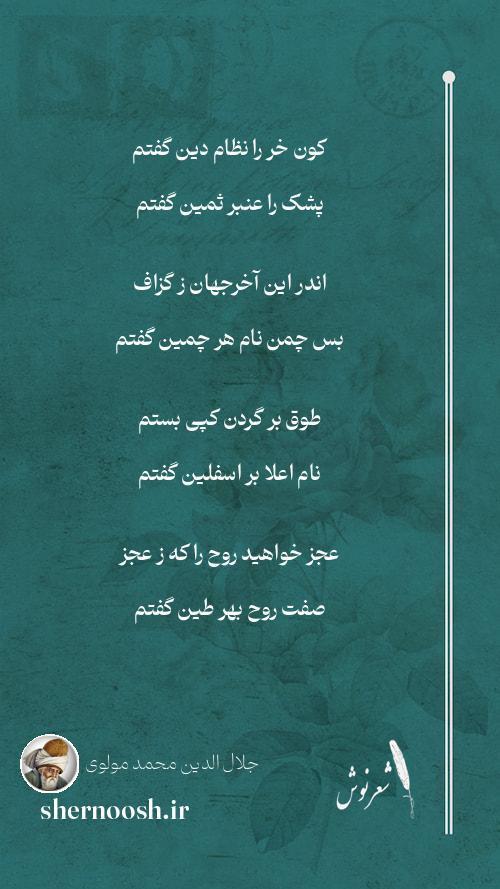 1 کون خر را نظام دین گفتم پشک را عنبر ثمین گفتم