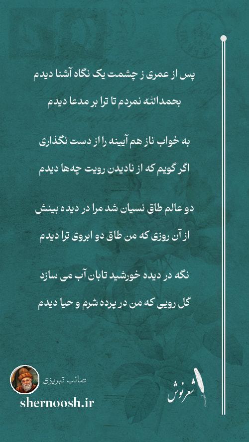 4 نگه در دیده خورشید تابان آب می سازد گل رویی که من در پرده شرم و حیا دیدم