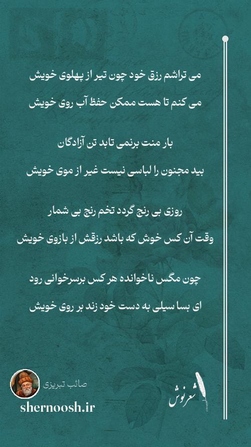 1 می تراشم رزق خود چون تیر از پهلوی خویش می کنم تا هست ممکن حفظ آب روی خویش