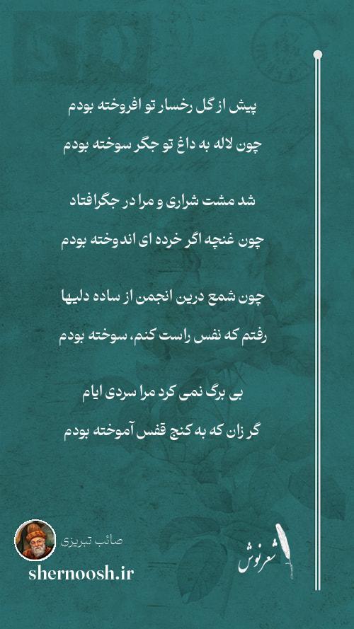 11 صائب جگرم داغ شد از ناله بلبل هر چند درین کار نفس سوخته بودم