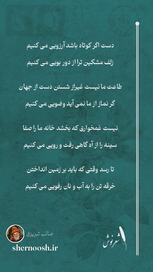 12 گر چه نتوان یافتن آن گوهر نایاب را تا نفس باقی است صائب جستجویی می کنیم