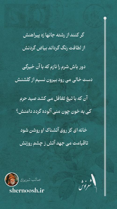 1 گر کنند از رشته جانها زه پیراهنش از لطافت رنگ گرداند بیاض گردنش