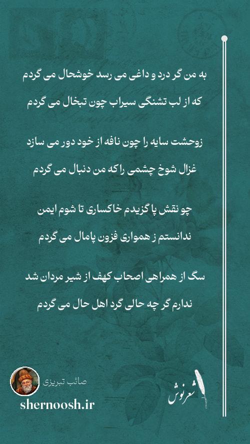 9 چه با من می تواند کرد صائب آتش دوزخ چو من آب از حجاب زشتی اعمال می گردم