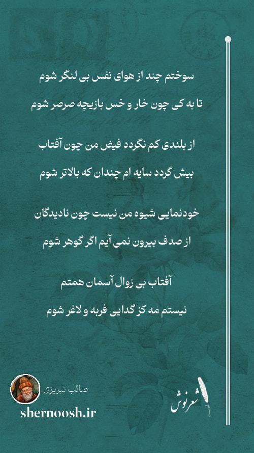 9 عاقبت چون قامتم را حلقه می سازد سپهر به که صائب در جوانی حلقه آن در شوم