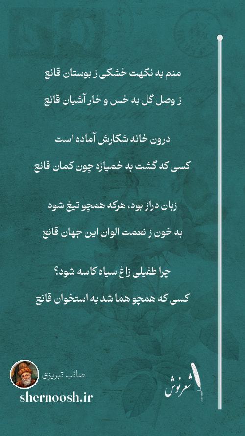 1 منم به نکهت خشکی ز بوستان قانع ز وصل گل به خس و خار آشیان قانع