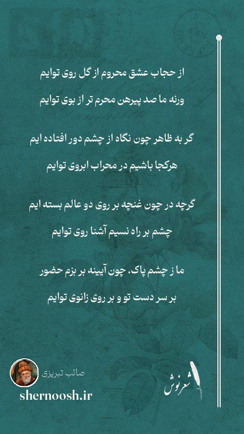 10 ما که صائب ره به حرف آشنایان بسته ایم گوش بر آواز حرف آشنا روی توایم