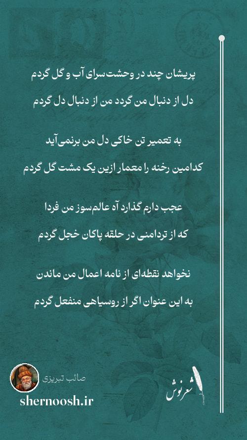 1 پریشان چند در وحشتسرای آب و گل گردم دل از دنبال من گردد من از دنبال دل گردم