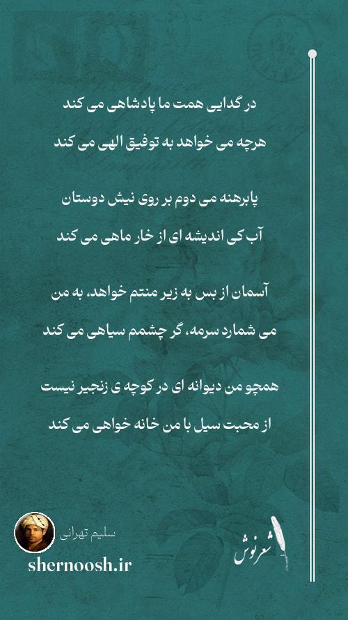 1 در گدایی همت ما پادشاهی می کند هرچه می خواهد به توفیق الهی می کند