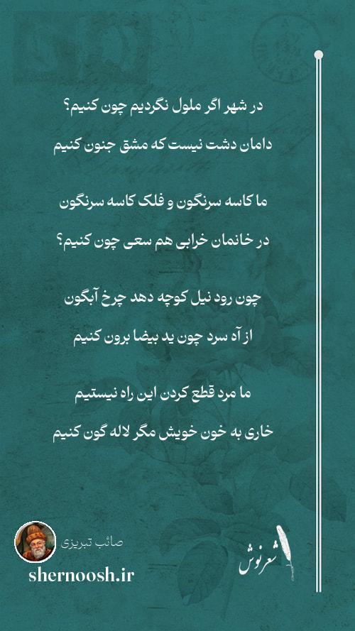 4 ما مرد قطع کردن این راه نیستیم خاری به خون خویش مگر لاله گون کنیم