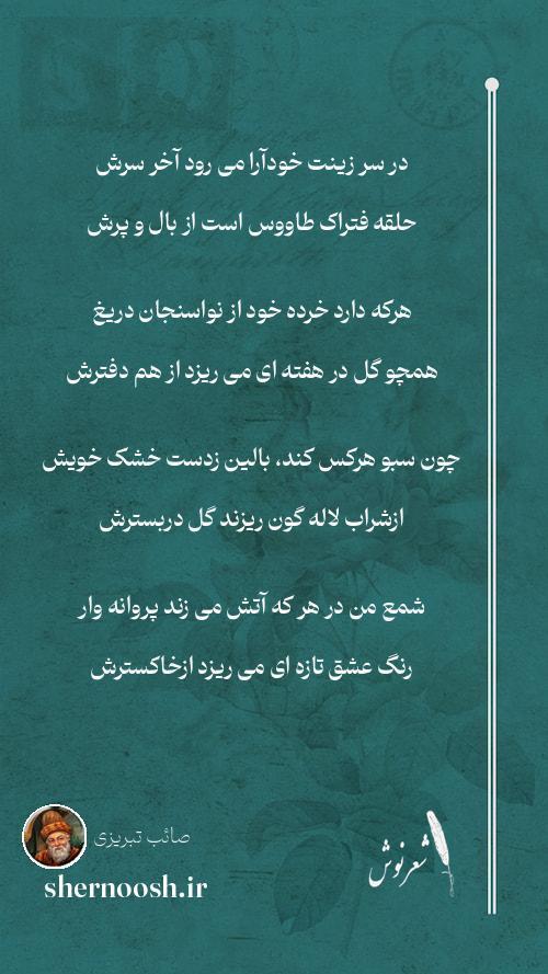 1 در سر زینت خودآرا می رود آخر سرش حلقه فتراک طاووس است از بال و پرش