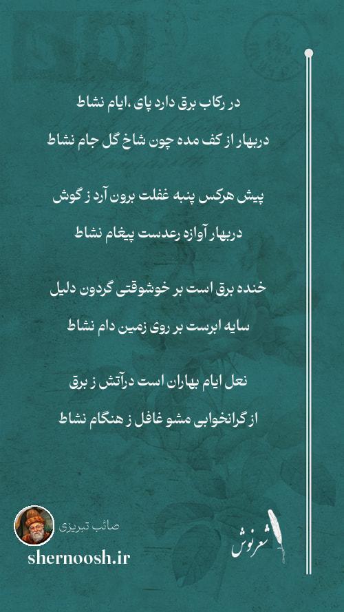 1 در رکاب برق دارد پای ،ایام نشاط دربهار از کف مده چون شاخ گل جام نشاط