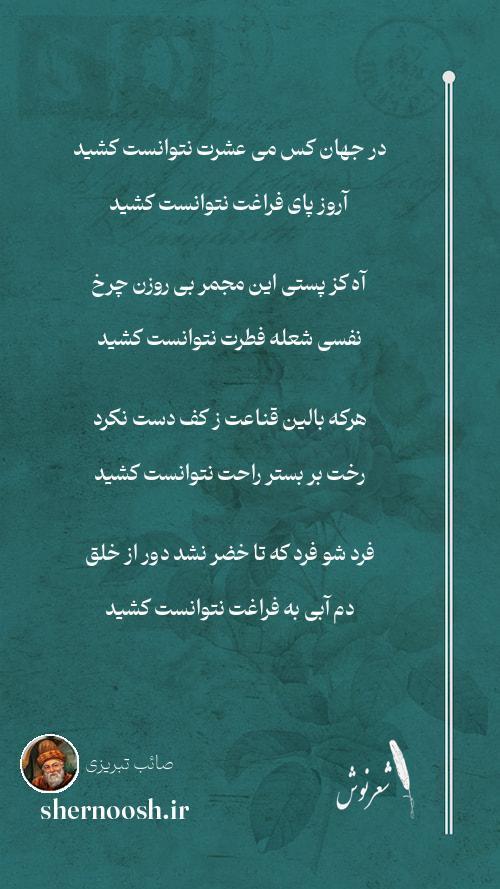 1 در جهان کس می عشرت نتوانست کشید آروز پای فراغت نتوانست کشید
