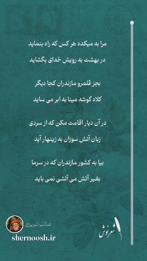 4 بیا به کشور مازندران که در سرما بغیر آتش می آتشی نمی باید
