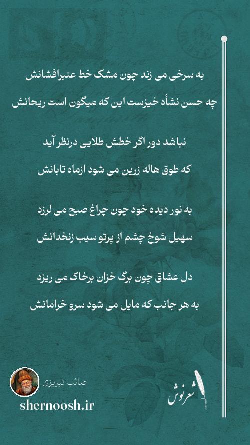 7 درین بستانسرا سروی بلند آوازه می گردد که باشد همچو صائب نغمه سنجی درگلستانش