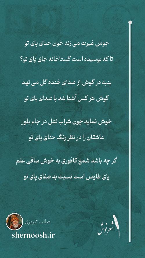 1 جوش غیرت می زند خون حنای پای تو تا که بوسیده است گستاخانه جای پای تو؟