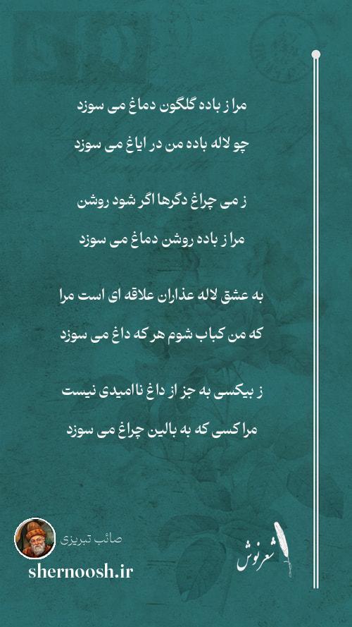 1 مرا ز باده گلگون دماغ می سوزد چو لاله باده من در ایاغ می سوزد
