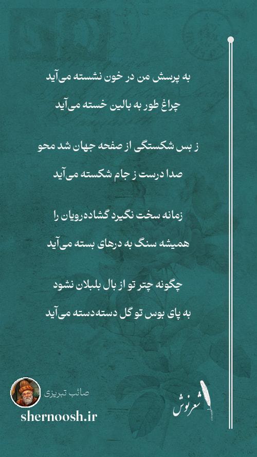 1 به پرسش من در خون نشسته میآید چراغ طور به بالین خسته میآید