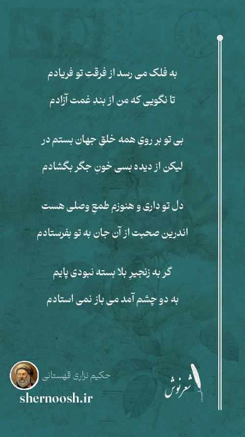 1 به فلک می رسد از فرقتِ تو فریادم تا نگویی که من از بندِ غمت آزادم