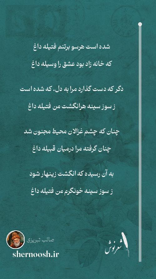 2 دگر که دست گذارد مرا به دل، که شده است ز سوز سینه هرانگشت من فتیله داغ