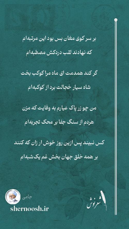 7 جامی از بخت سیه نیست جز اینم هوسی که کشد پهلوی آن دانه در چون شبهام