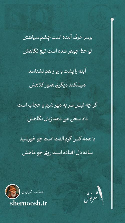 1 برسر حرف آمده است چشم سیاهش نو خط جوهر شده است تیغ نگاهش