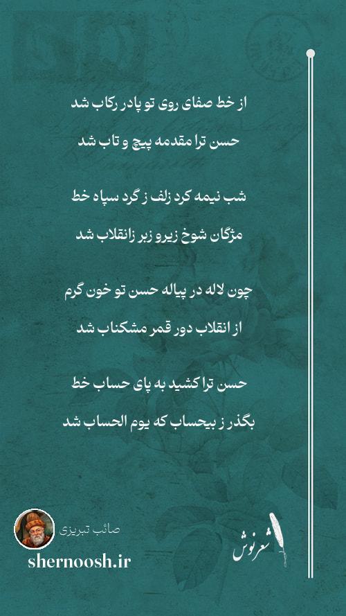 4 حسن ترا کشید به پای حساب خط بگذر ز بیحساب که یوم الحساب شد