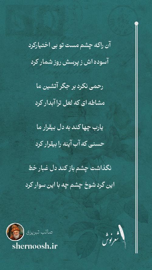 3 یارب چها کند به دل بیقرار ما حسنی که آب آینه را بیقرار کرد
