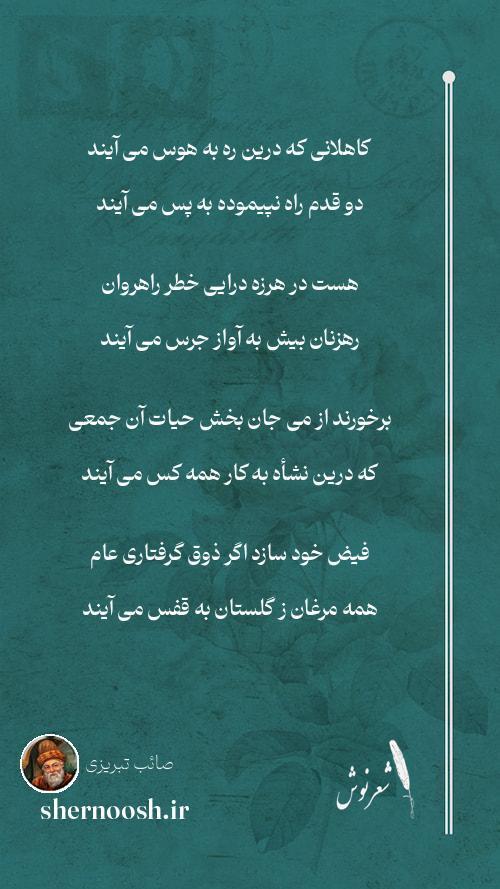 4 فیض خود سازد اگر ذوق گرفتاری عام همه مرغان ز گلستان به قفس می آیند