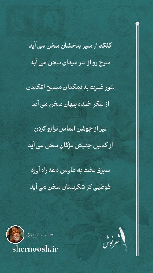 1 کلکم از سیر بدخشان سخن می آید سرخ رو از سر میدان سخن می آید