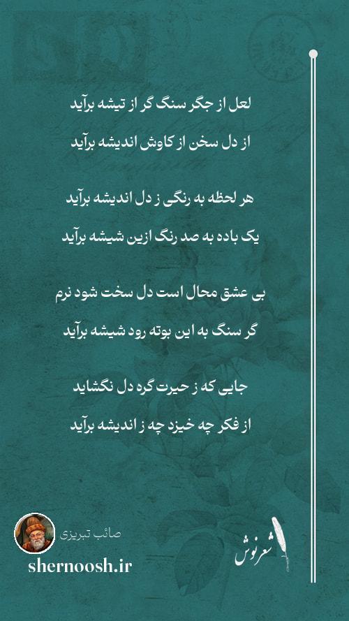 1 لعل از جگر سنگ گر از تیشه برآید از دل سخن از کاوش اندیشه برآید