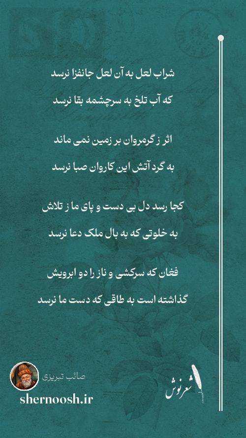 1 شراب لعل به آن لعل جانفزا نرسد که آب تلخ به سرچشمه بقا نرسد