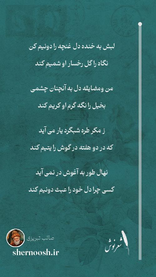 10 چو صائب آن که به لخت جگر قناعت کرد عجب نباشد اگر ناز برنعیم کند