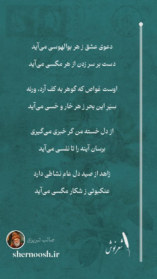 1 دعوی عشق ز هر بوالهوسی میآید دست بر سر زدن از هر مگسی میآید