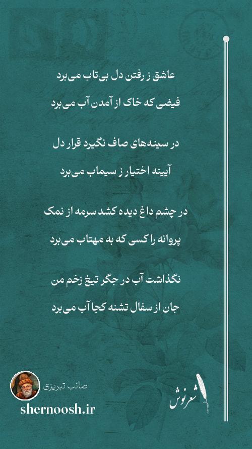 9 صائب مرا چو آب خمار آورد به هوش هرچند هوش خلق می ناب میبرد