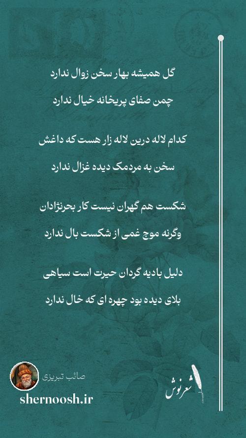 1 گل همیشه بهار سخن زوال ندارد چمن صفای پریخانه خیال ندارد
