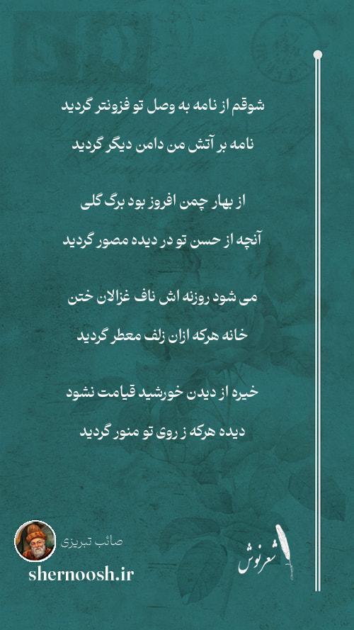 1 شوقم از نامه به وصل تو فزونتر گردید نامه بر آتش من دامن دیگر گردید