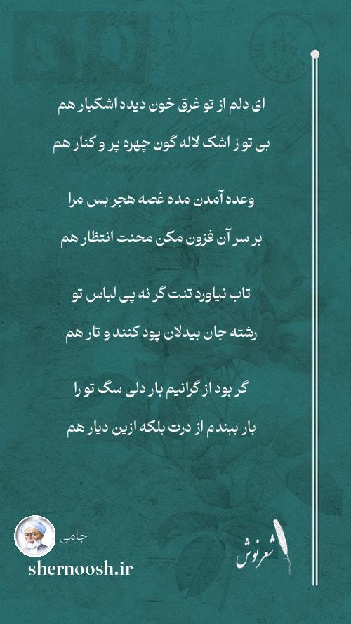 1 ای دلم از تو غرق خون دیده اشکبار هم بی تو ز اشک لاله گون چهره پر و کنار هم