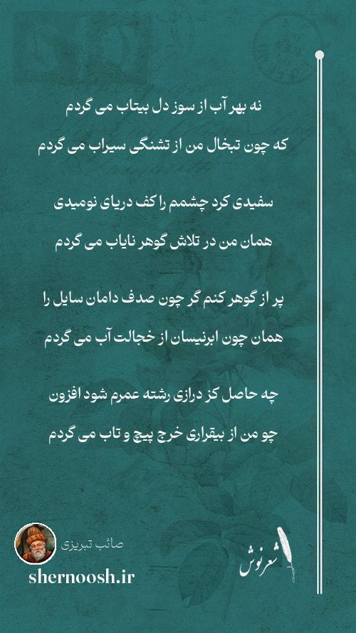 1 نه بهر آب از سوز دل بیتاب می گردم که چون تبخال من از تشنگی سیراب می گردم