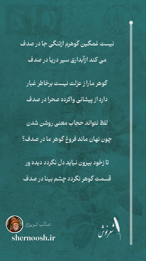22 نیست صائب دربساط بحر باآن دستگاه آنقدر گوهر که دارد دیده ما در صدف