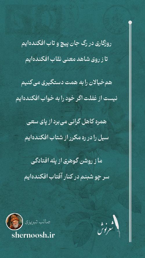 4 ما ز روشن گوهری از پله افتادگی سر چو شبنم در کنار آفتاب افکندهایم