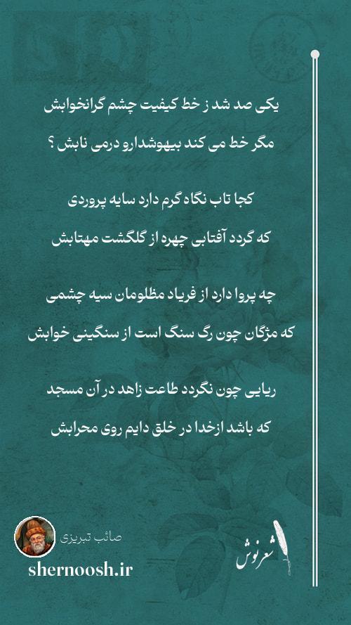 1 یکی صد شد ز خط کیفیت چشم گرانخوابش مگر خط می کند بیهوشدارو درمی نابش ؟