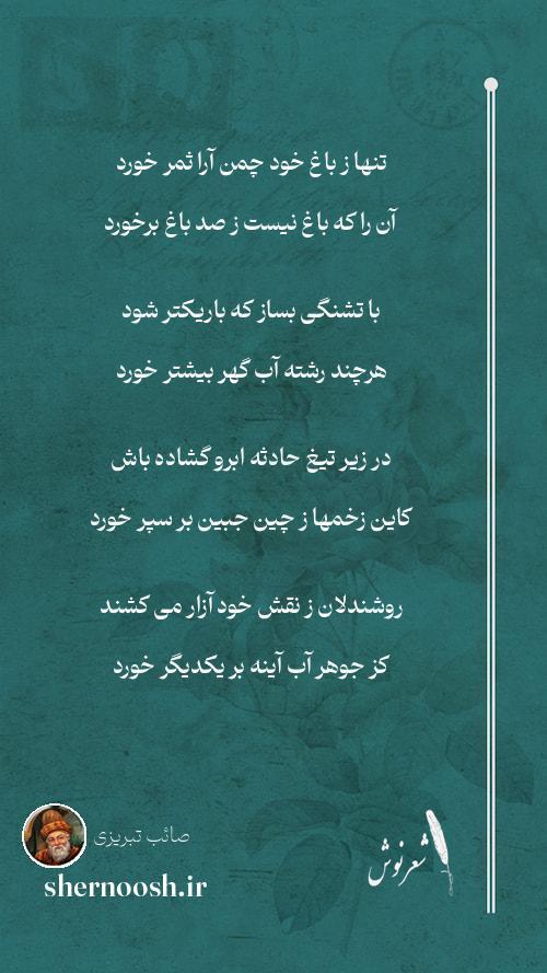4 روشندلان ز نقش خود آزار می کشند کز جوهر آب آینه بر یکدیگر خورد