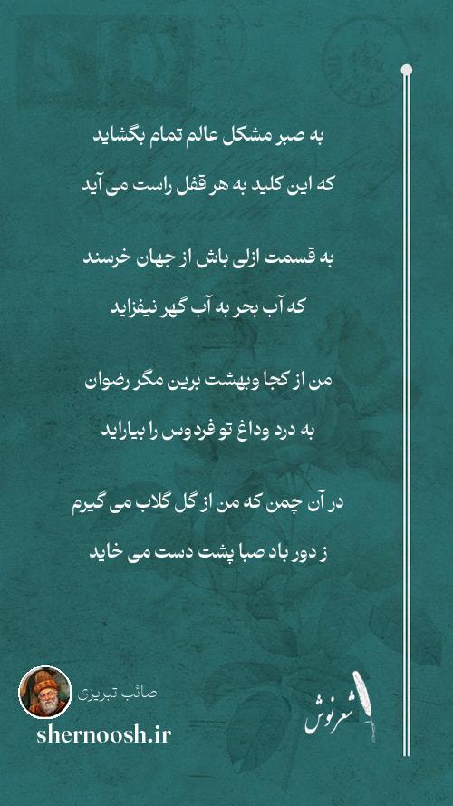 1 به صبر مشکل عالم تمام بگشاید که این کلید به هر قفل راست می آید