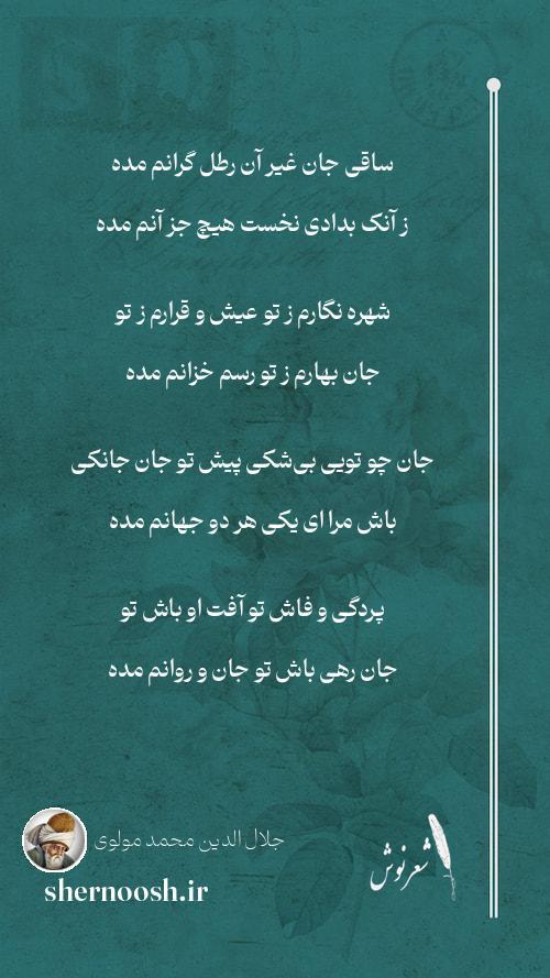 1 ساقی جان غیر آن رطل گرانم مده ز آنک بدادی نخست هیچ جز آنم مده