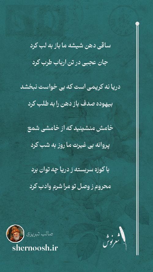 12 صائب چه کند باده ننوشد که درین بزم هشیار ز جانان نتوان بوسه طلب کرد