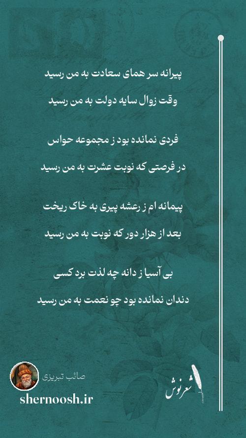 1 پیرانه سر همای سعادت به من رسید وقت زوال سایه دولت به من رسید